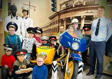 В музейной комнате можно побывать в роли "мотоциклиста", ведь там находится самый настоящий патрульный ретро мотоцикл!