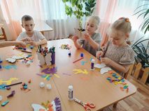Сегодня мы с ребятами группы "Ручеёк" побеседовали об этих удивительно красивых насекомых, вспомнили названия знакомых бабочек, выполнили аппликацию из цветной бумаги, нарисовали цветными мелками бабочек на асфальте.