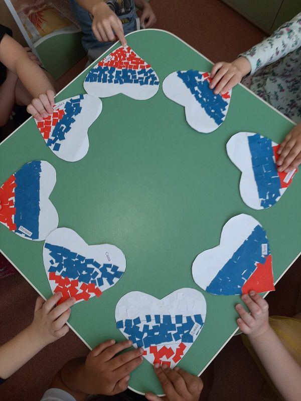 сделали открытку - сердечко в цветах флага России для украшения группы.
